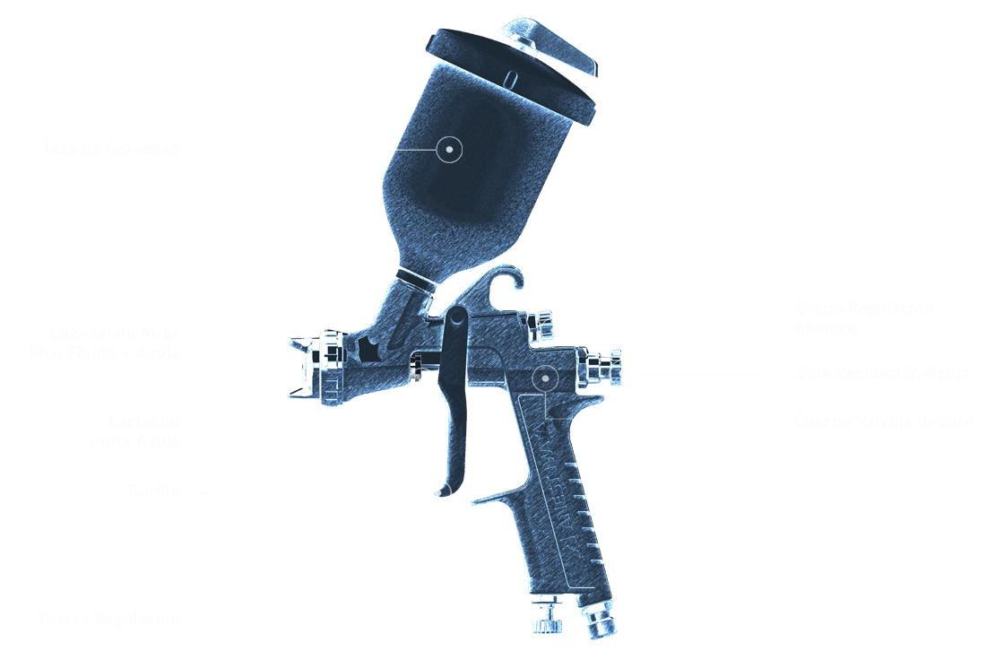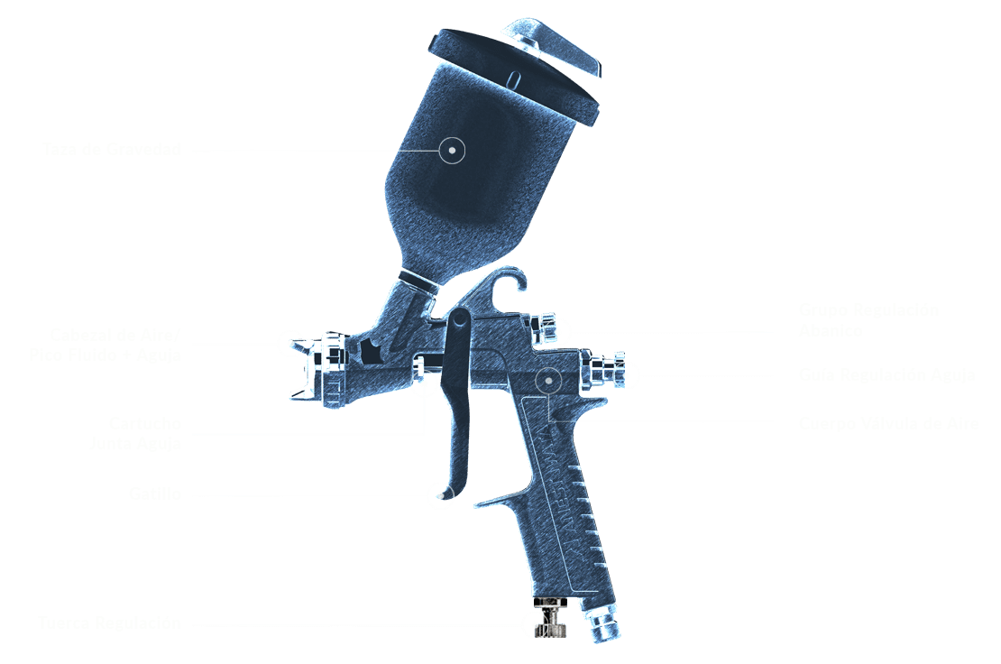 Hay disponible una amplia gama de tamaños de boquillas divididas de 1,0 mm a 2,0 mm con un solo cabezal para todos, lo que convierte a esta pistola en un equipo muy versátil.