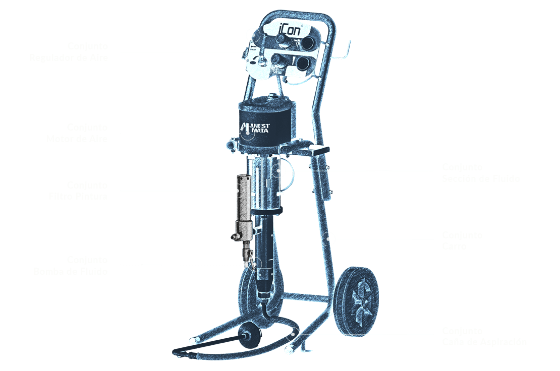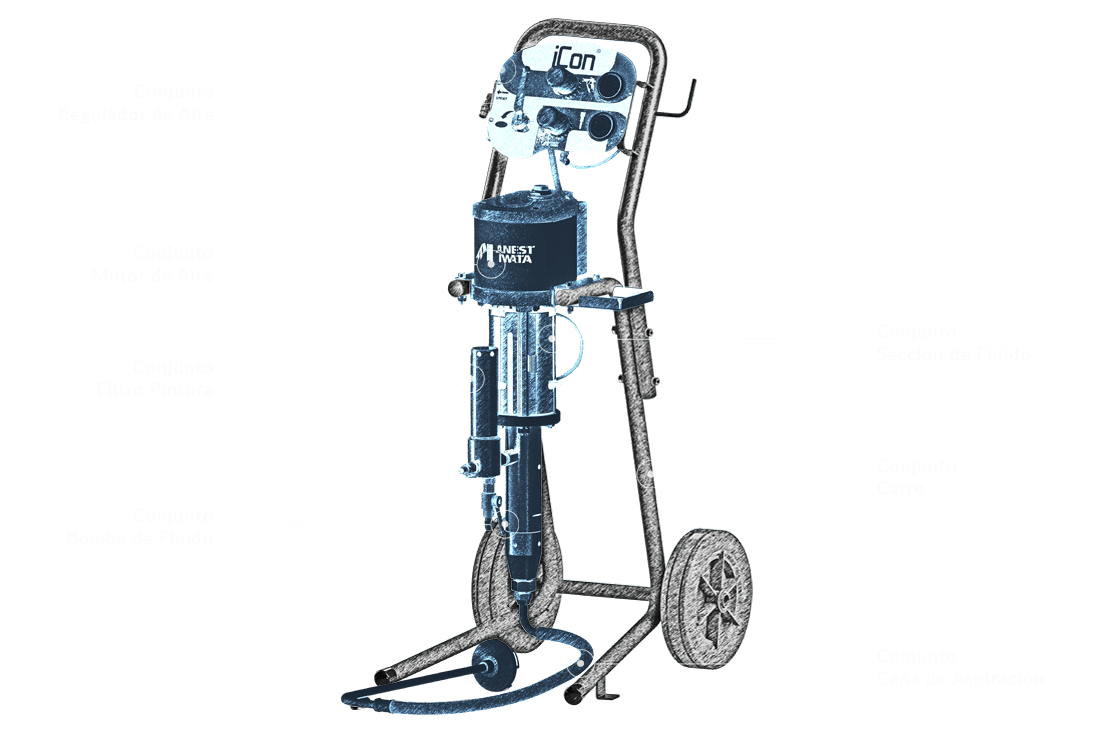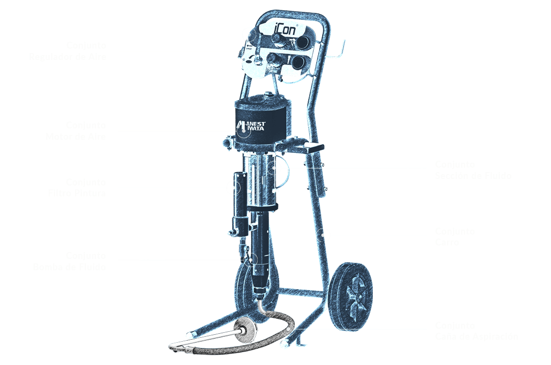 Multispray iCon se caracteriza por una relación de 32:1. La salida de fluido es de 3,6 l/min a una presión máxima de 224 bar. Ideal para aplicaciones de media presión.