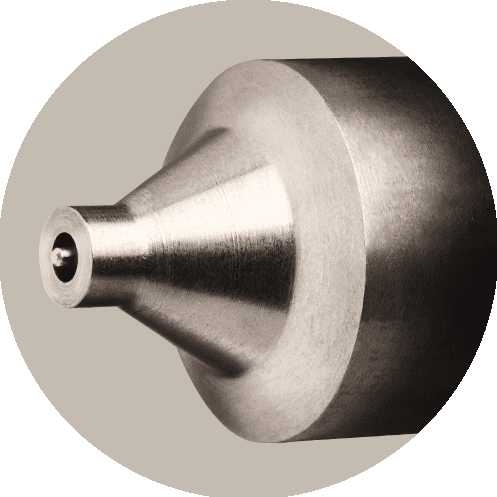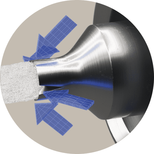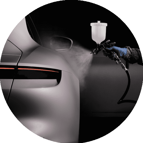 La peinture est atomisée au plus près de sa sortie grâce au flux d'air orienté au cœur du produit.