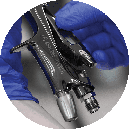 La buse à ailettes™ 2.0 des pistolets IWATA LS400 et WS400 SR2 est unique : elle permet la pulvérisation la plus fine et la plus homogène du marché.