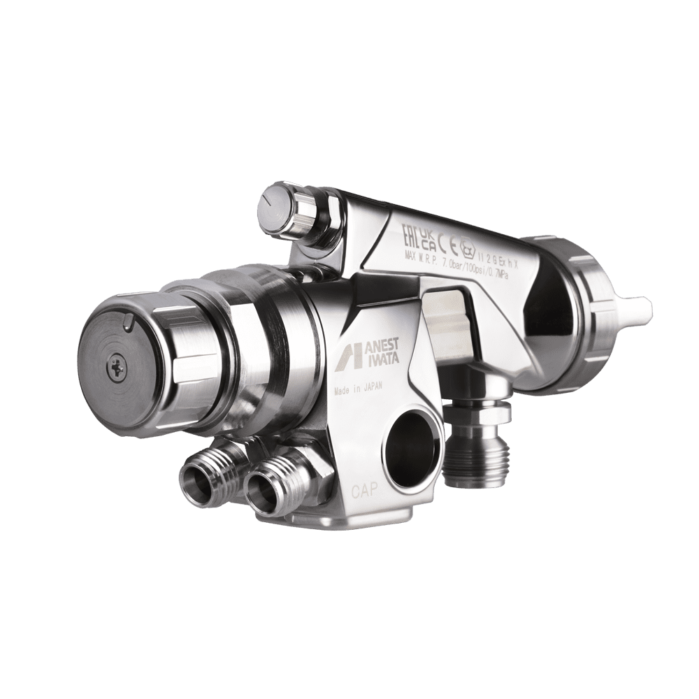 Pistolet automatique destiné à l'application sur pièces de moyennes et grandes dimensions. Disponible avec la technologie de buse à ailettes, créée par Anest Iwata.