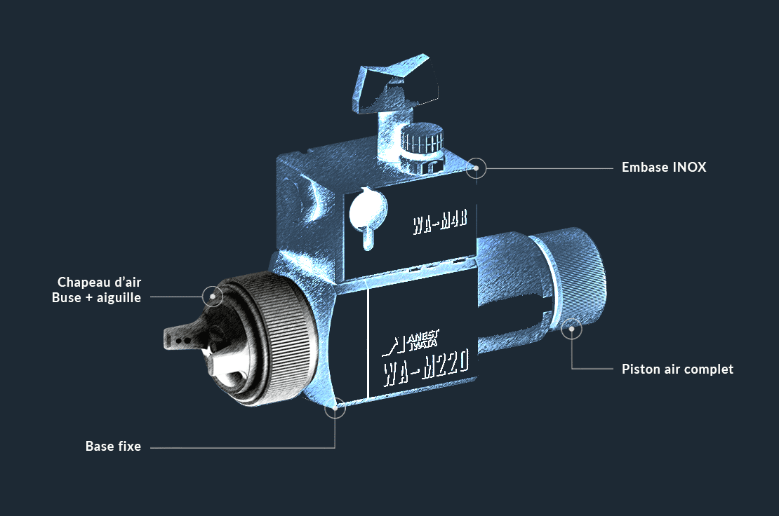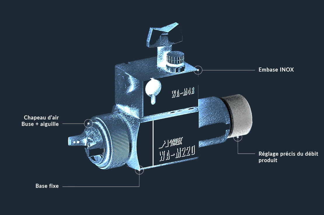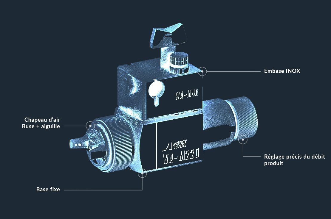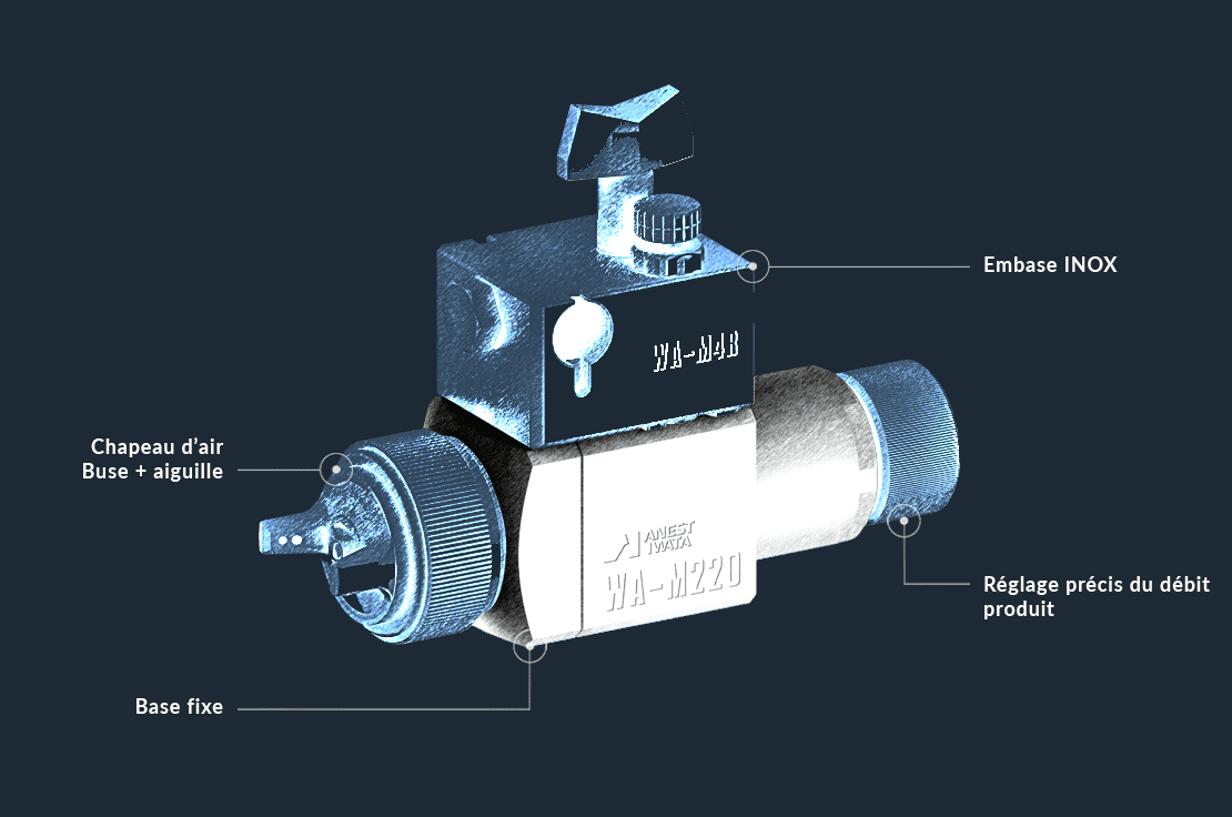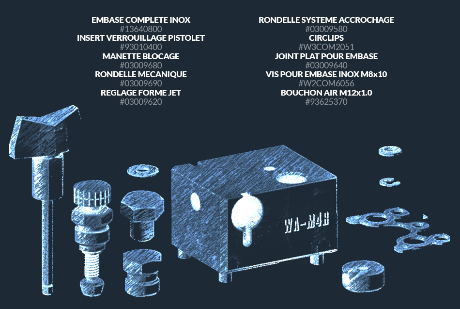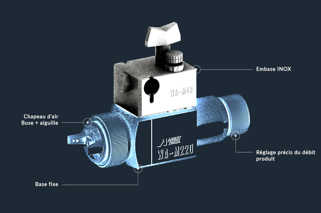 Le WA-M 220 est équipé d'une embase mémorisant la position du pistolet tout en lui permettant d'être désassemblé très rapidement.