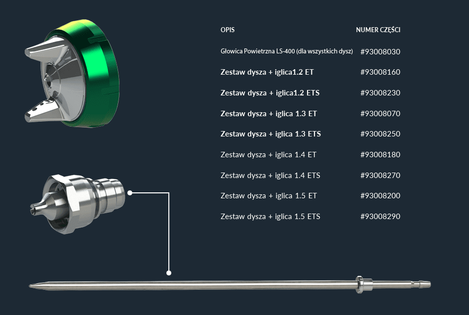 Pierścień głowicy powietrza (zielony)#93008060 Zestaw uszczelnień głowicy (2szt)#93018310 Dysze i głowice