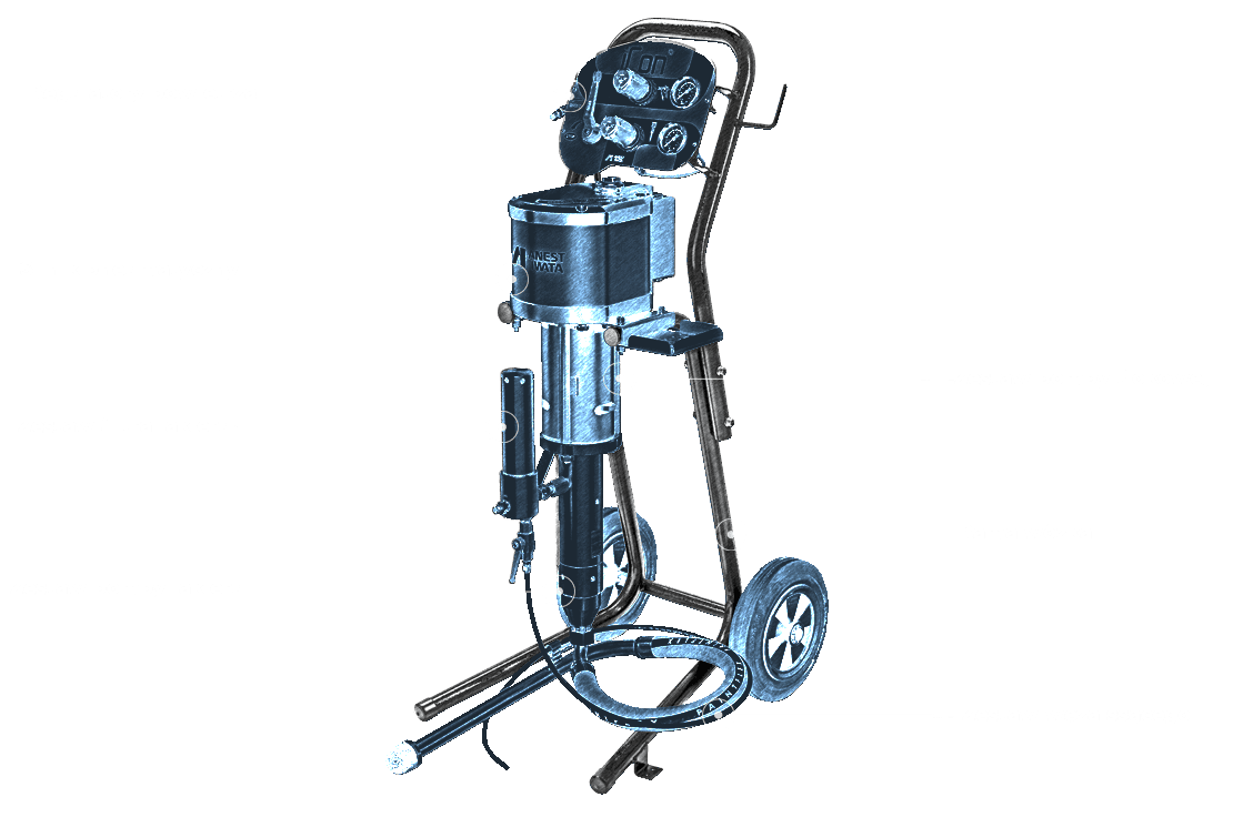w sektorze przemysłowym. Idealna do lakierowania drewna lub metalu, ram zewnętrznych lub napraw łodzi. Dostępna z zestawem zbiornika lub rurą ssącą oraz opcjonalnie z uchwytem ściennym.
