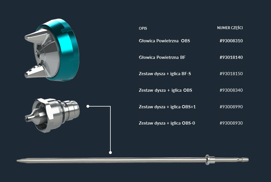 Pierścień głowicy powietrza (niebieski)#93008060 Zestaw uszczelnień głowicy (2szt)#93018310 Dysze i głowice