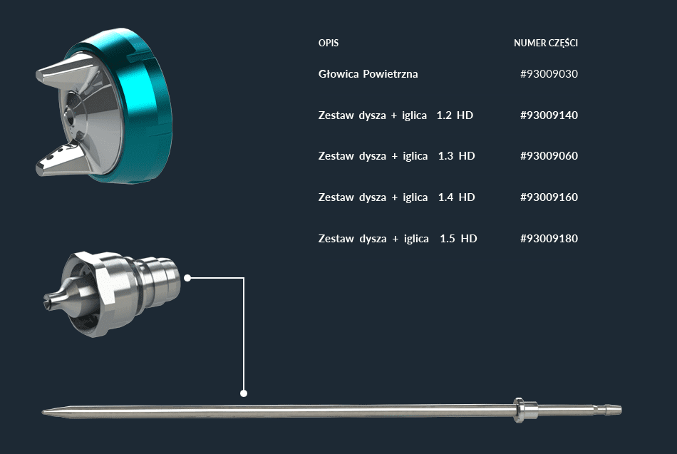 Pierścień głowicy powietrza (szary)#93009050 Zestaw uszczelnień głowicy (2szt)#93018310 Dysze i głowice