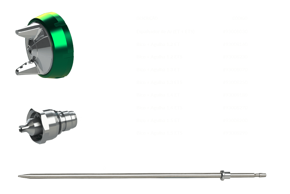 Anel do Espalhador de Ar (Verde)#93008060 Junta do Espalhador de Ar - 2 pças.#93018310 Espalhador + Bico + Agulha