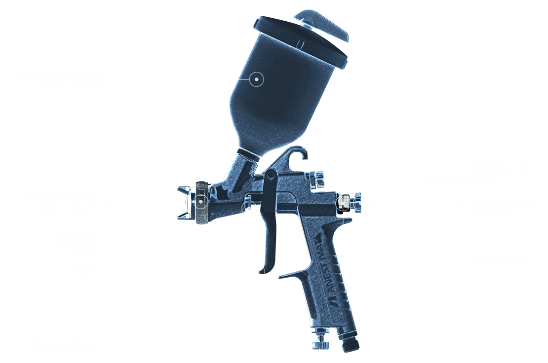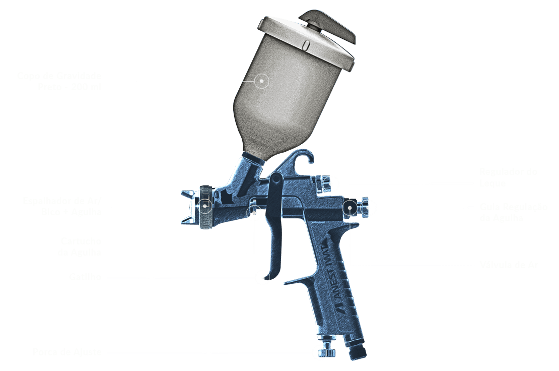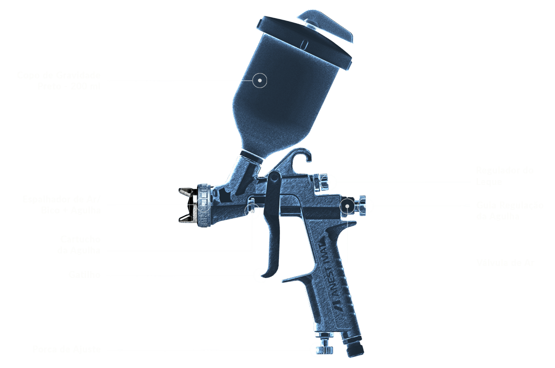 A W-300 WB UV é equipada com o bico Split Nozzle™. A tecnologia ajuda a polir o material UV, dando-lhe uma tensão superficial mais baixa na aplicação do primer e efeitos casca de laranja reduzidos. A tecnologia Split Nozzle™ também permite reduzir as pressões operacionais, ao mesmo tempo em que consegue uma atomização excepcional.